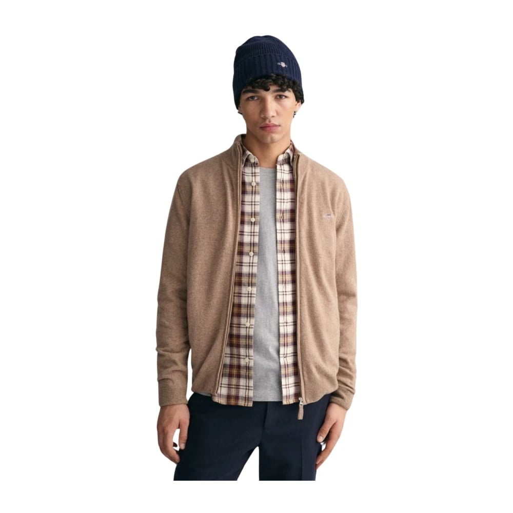 Gant, Stickade Tröjor , Herr, M, Superfin Zip Cardigan i Lammull