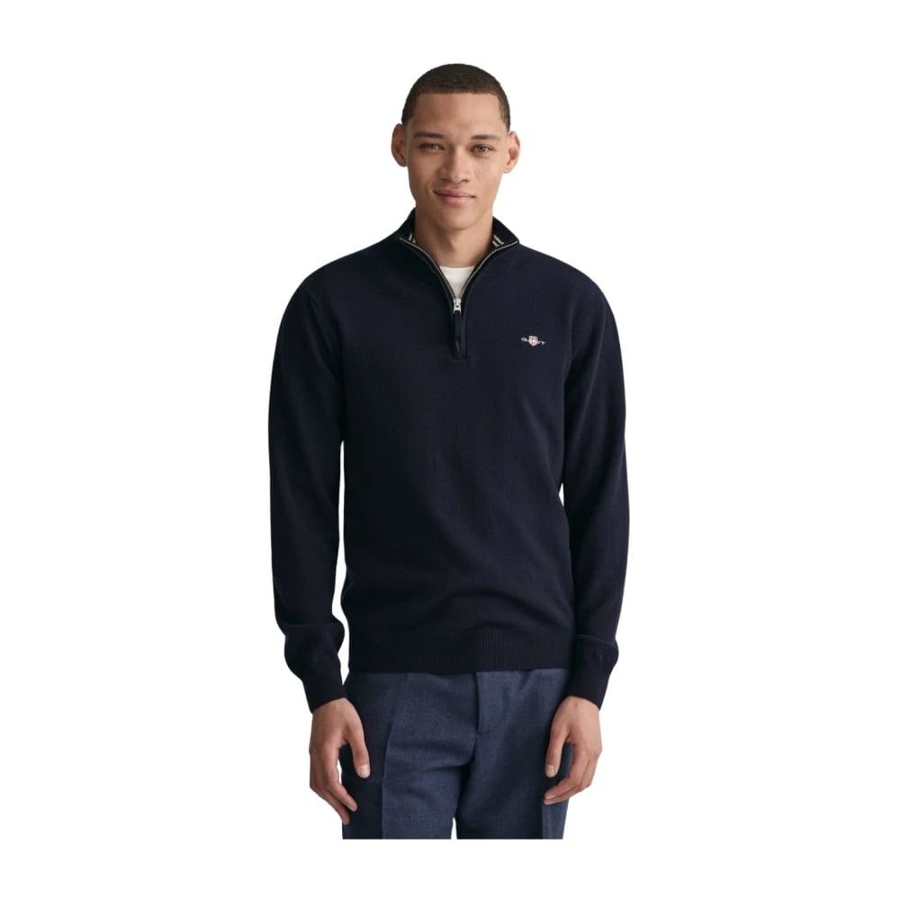 Gant, Stickade Tröjor , Herr, XL, Marine Half-Zip Tröja