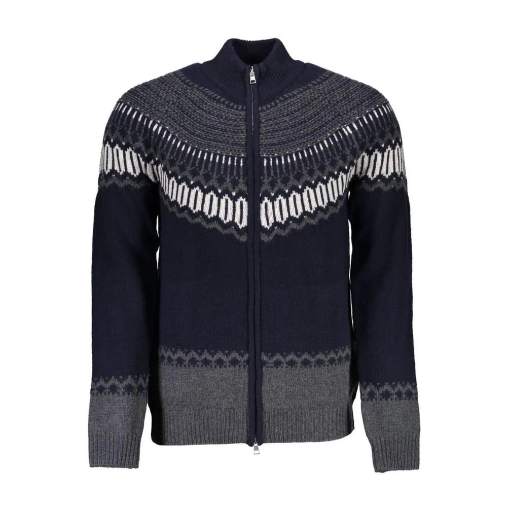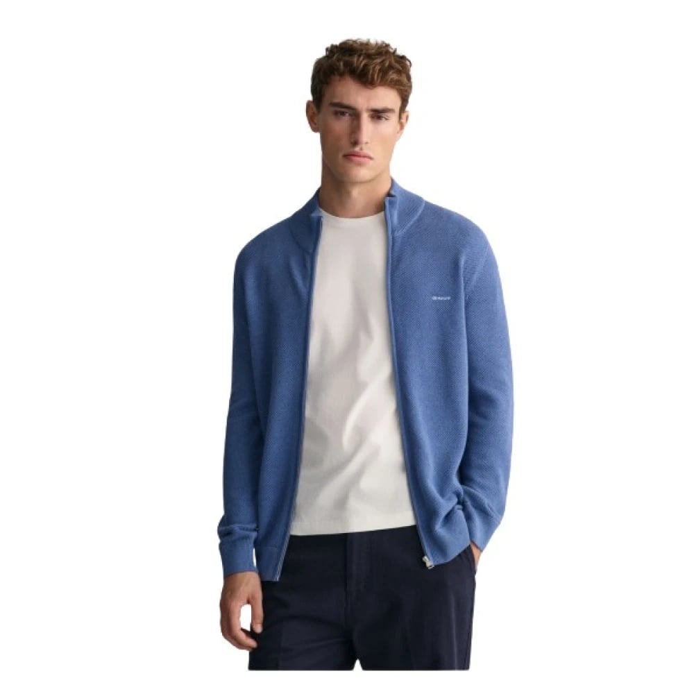 Gant, Stickade Tröjor , Herr, S, Blå Ullkardigan med Dragkedja