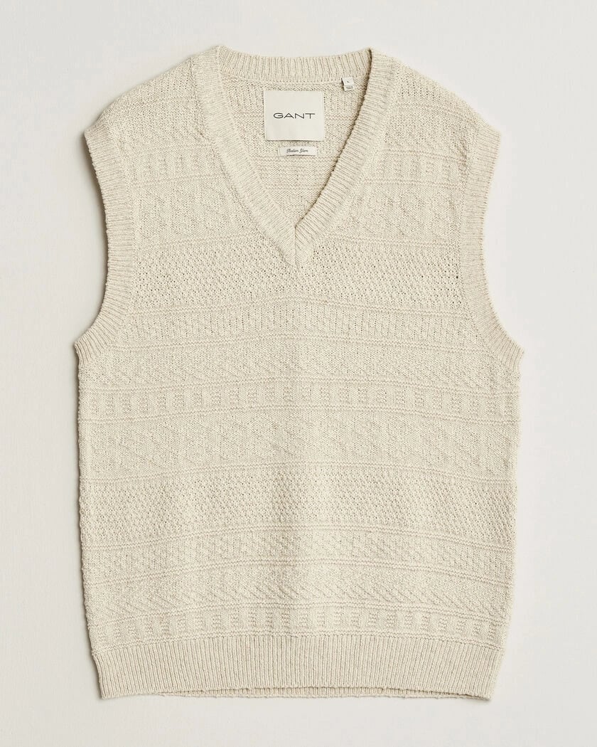 GANT Cotton/Linen Textured Vest Creamed White