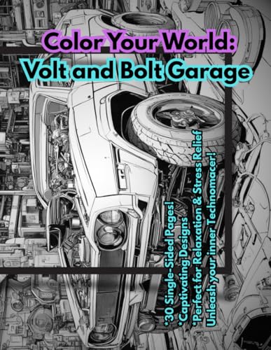 Volt and Bolt Garage Coloring Book: Cool Cars, Robots for kids & adults - Fun Stem Activity for Future Engineers, Mechanics & Robotics