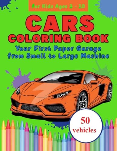 Cars Coloring Book for Kids Ages 3 – 10: Your First Paper Garage, as many as 50 Vehicles, from Small to Large Machine