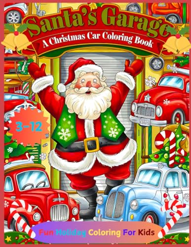 Santa's Garage: A Christmas Car Coloring Book: Fun Holiday Coloring for Kids Ages 3-12