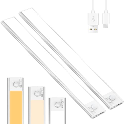 Epicflare 2 stycken 24 cm underbyggda lampor kök LED 1 500 mAh skåpbelysning trådlösa lysdioder sensor ljus 3 färglägen dimbar skåpbelysning med rörelsedetektor för kök garage skåp trappor