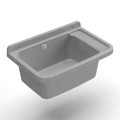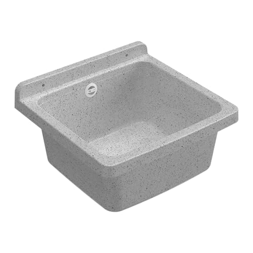 Adventa Tvättbadkar av PP-harts, väggfäste, med sifon och plåt, resistent mot vanlig syra, tvätt, garage, utomhus, granit, 50 l x 35 x 24 H cm