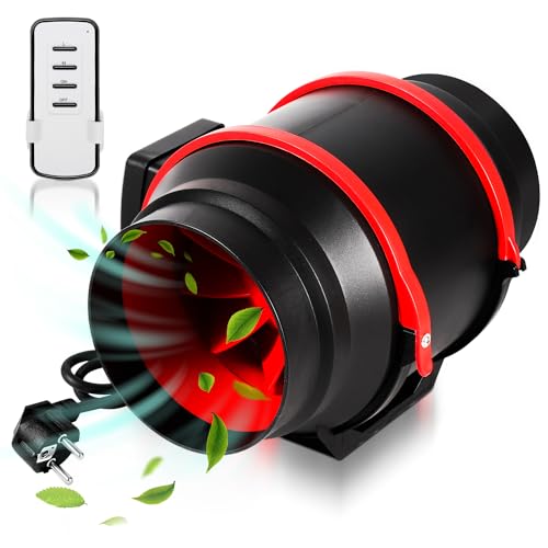 Randaco Tubfläkt 150 mm med fjärrkontroll, 2-hastighetsregulator, in-line-fläkt 540 m³/h, för badrum, växthus, trädgårdstält, garage (1 st)