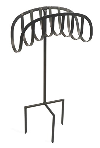 Liberty Garden Freestanding Decorative Powder Coated Steel Manger Garden Hose Holder Storage Stand with 3 Prong Anchor Support, Black