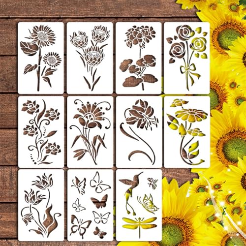 Large Garden Fence Flower Stencils DIY Painting Templates - Reusable Yard Spray Paint Crafts for Fence and Garden Decor (11PCS)