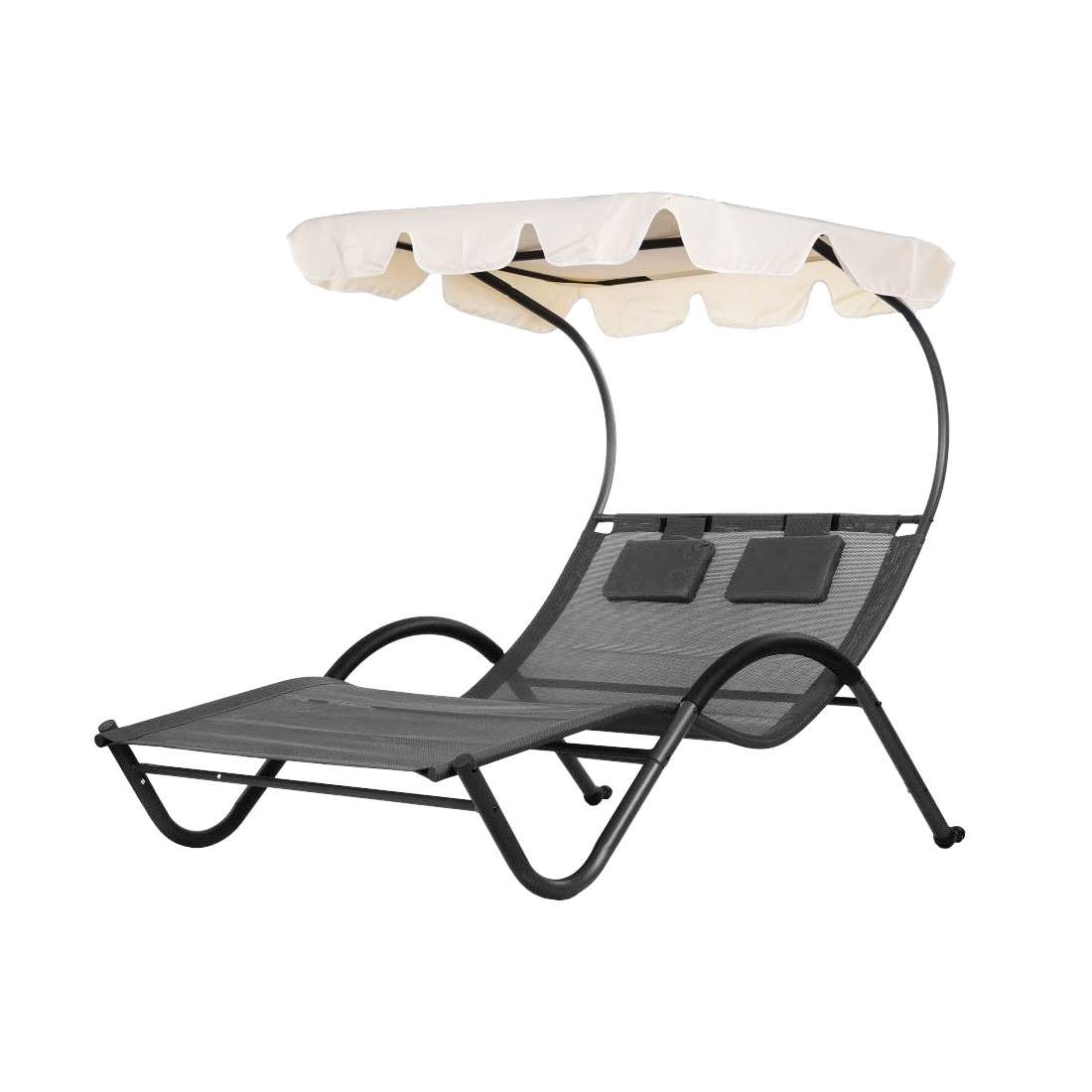 2-sits Hollywood Swing Garden Swing med soltak, kudde och bricka, metallram, polyesteröverdrag, beige, 162x118x173cm