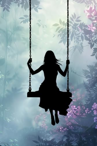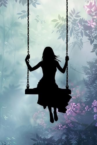 Silhouette of Beautiful Woman on a Swing in a Mythical Garden - Lined Notebook with College Ruled Pages.