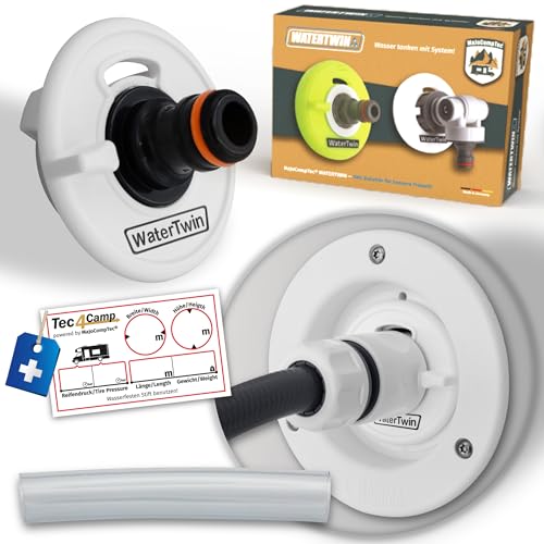 Watertwin Husbil vattentankadapter | Caravan påfyllningssticka tillbehör | vattentanklock med dubbel Gardena-anslutning (adapter för tanklock 2-stifts D:65 FIAMMA)