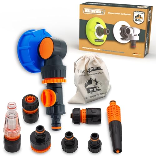 MaJoCompTec® WATERTWIN vattentank påfyllningsadapter | husbil, husvagn, vattenanslutning, tillbehör | påfyllningsadapter kompatibel med Gardena (FLEX + CONNECT-Set, adapter för tanklock IG60 grov