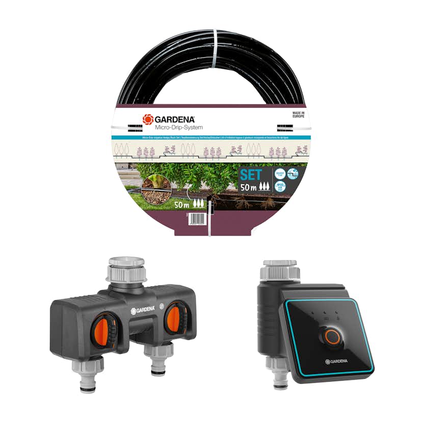 Droppslang Gardena 50 m Premiumpaket För Buskar & Häckar med Vattenfördelare & Bevattningsdator