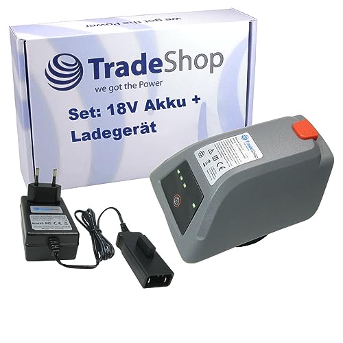 Trade-Shop 2-i-1 set: Li-Ion batteri 18 V/2 000 mAh laddare inkl. strömförsörjning kompatibel med Gardena 8025-20 Comfort vägg-slangbox 35 rull-up automatisk Li