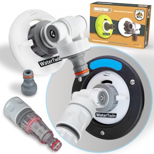 MaJoCompTec® WATERTWIN tankadapter vattenfilterset | husbil vatten tanklock tillbehör | påfyllningsstutsanslutning kompatibel med Gardena (adapter 3-stifts D:78 kompakt filter)