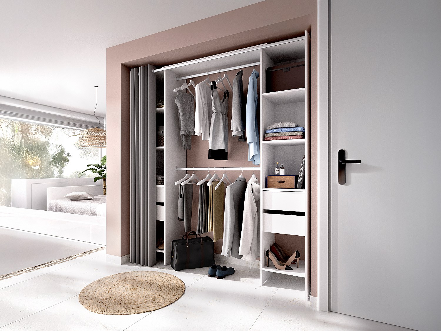Garderob med integrerad gardin 110/178 cm vitLONAZA
