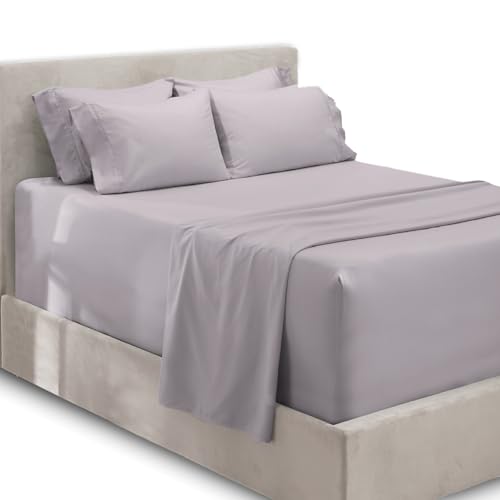 Hearth & Harbor extra djup ficka full storlek lakanset – passar madrass 45 cm djup – extra djupa fickark – 6 delar fullstora ark – helt ark djup ficka – brungrå