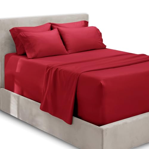Hearth & Harbor extra djupa fickark – passar madrass 45 cm djup – extra djup ficka king size lakanset – 6 delar king size-lakan – kungslakan djup ficka – vinröda lakan