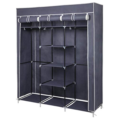 Meerveil Tygskåp för sovrum, garderob, hopfällbar, med sex dragkedjor och tre dörrar, snabb åtkomst, 175 x 150 x 45 cm, stort förvaringsutrymme, grå