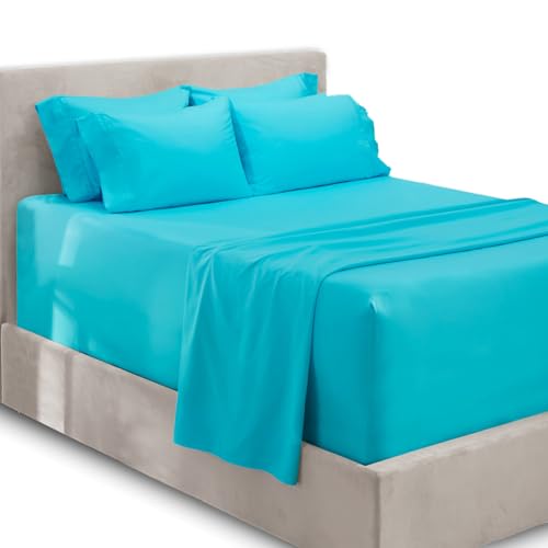 Hearth & Harbor extra djupa fickark – passar madrass 45 cm djup – extra djup ficka queen lakanset – 6 delar queen size lakan – queen sheets – queen sheets djup ficka – aquablå lakan
