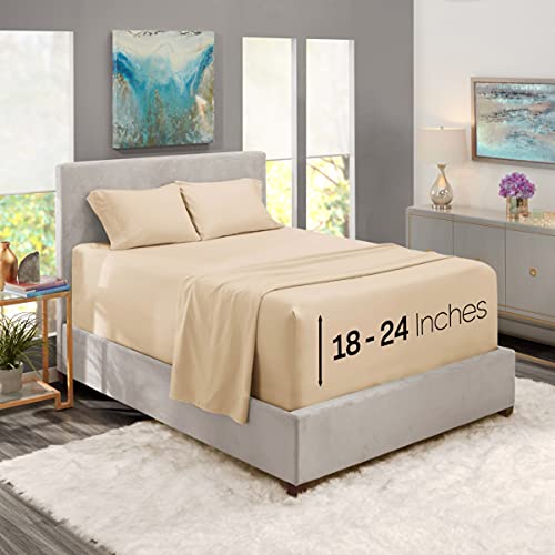 Nestl Queen size, lakanset i 4 delar, extra djup ficka (45-61 cm / 18-24 tum), mikrofiber, hotellyx, mjukt, andningsbart, skrynkelfritt, lätt att sköta, beige och krämfärgat