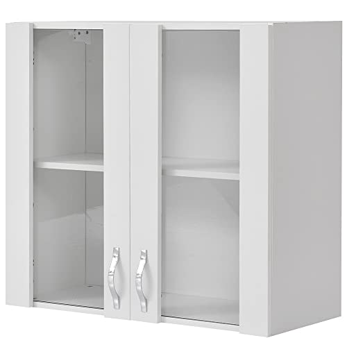 Shally Dogan Skåp, Köksskåp med glas, vägghängande garderob i trä två dörrar 1 hylla 2 fack, hållbart rymligt skåp, vit dim. 80 x 32 x 72 H cm