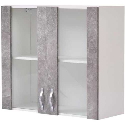Shally Dogan Skåp, Kök Väggskåp Med Glas, Vägghängande Garderob Trä Två Dörrar 1 Hylla 2 Fack, Rymlig, Slitstark, Grå Cement Dime. 80 x 32 x 72H cm