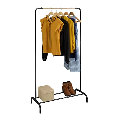 Relaxdays Klädställ, HBT: 149 x 80 x 40 cm, klädstång, jackor, skjortor, metall, fristående garderob, svart