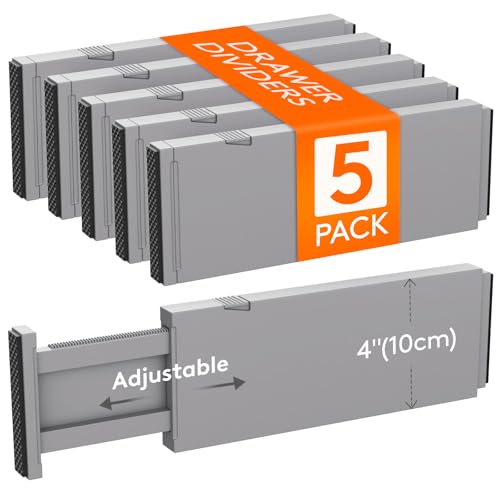 Lifewit Set med 5 lådavskiljare i plast för innerlängd, justerbar arrangör organisationssystem för garderob/sovrum/byrå/kök/kontor, grå