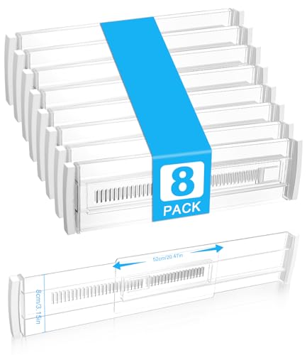 Cexovo Uppsättning med 8 lådavskiljare justerbar plast lådavskiljare (28,5–50,5 cm) lådavskiljare kök, justerbar lådavskiljare för garderob, sovrum, byrå, kök, transparent