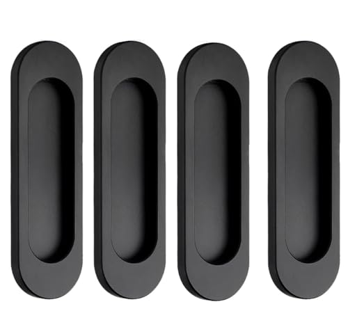 Guidre 4-pack skjutdörrhandtag 10 cm självfästande ovala skjutdörrsdrag, matt svart rostfritt stål skåp lådknopp för kök skåp garderob byrå ladugårdsdörr garderob