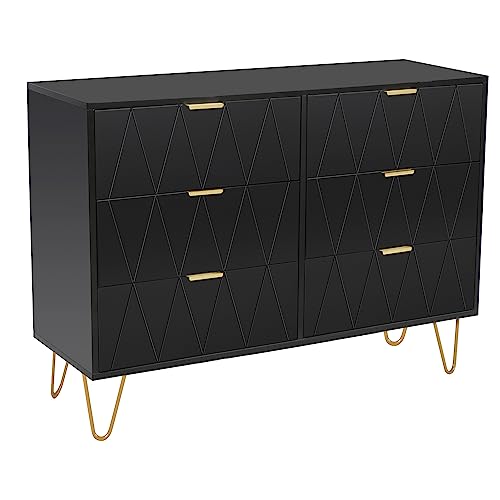 UEV Byrå, Garderob med 6 lådor, förvaringsskåp för barnrum och vuxna, 100 x 34 x 73 cm, buffé för vardagsrum, elegant skandinavisk stil, svart