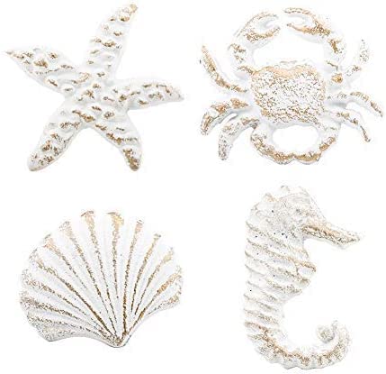 INCREWAY Skåpknoppar, 4-pack retro havshandtag, enkelt hål gjutjärn byrå skåp garderob kök strandtema låda draghandtag, snäckskal sjöhäst sjöstjärna krabba (vit)