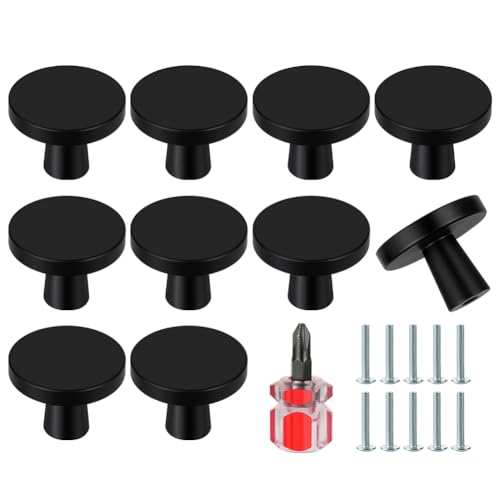 Ainiv 10 delar dörrknoppar, svarta möbelknoppar, runda skåpsknoppar, svarta lådknoppar, köksdörrhandtag för byrå, garderob, möbler, skåp, med skruvmejsel
