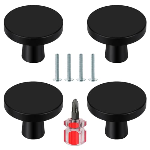 Ainiv 4-delade dörrknoppar, svarta möbelknoppar, runda skåpsknoppar, svarta lådknoppar, köksdörrhandtag för byrå, garderob, möbler, skåp, med skruvmejsel