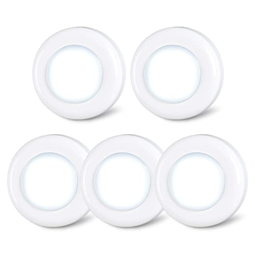 Star-Spangled Trycklampor, portabla små spotlights för inomhusbruk, portabel trycklampa med LED-puck och klister, batteridrivna för garderob, byrå, klädkammare, kök, skåp, kallvit, 5-pack