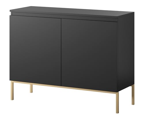Selsey Byrå garderob med 2 dörrar 77 x 100 cm på gyllene ben förvaringsskåp för sovrum svart bemmi, en storlek