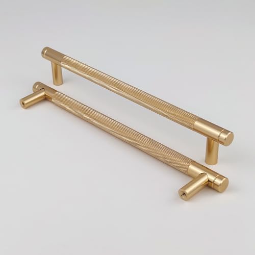 OUTAKU Guld köksskåpsknoppar och drag knurl mässing låda byrå drar skåp garderob dörrhandtag moderna 2-pack (2, enkelhålstång)