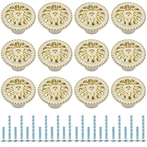 atopo 12 stycken lådknoppar, skåphandtag, dörrhandtag med 2 storleksskruvar för möbler, skåp, byrå, garderob, perfekt för kök, badrum, sovrum (guld)