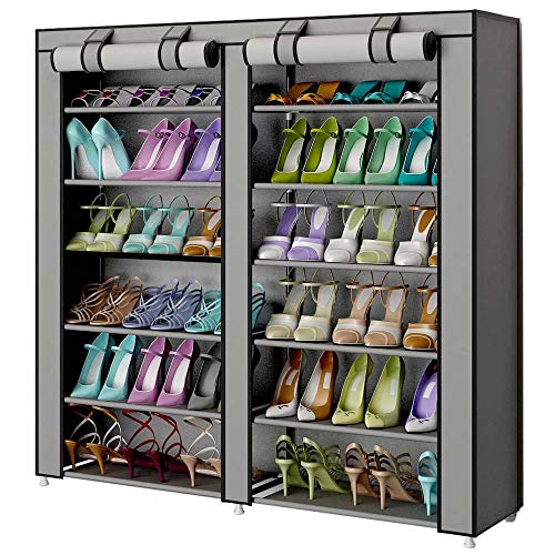 BAKAJI Sko Sko Garderob 7 Hyllor 115x30x110cm Upp till 36 Par Skor Stål Struktur och TNT Tyg Beläggning Vattentät Med Zip Stängning Dammtät (Grå)