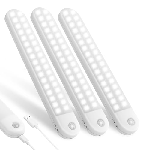 Vicloon rörelsesensorlampor, 3 st skåpljus med rörelsedetektor och magnetiska remsor, belysning under skåp uppladdningsbar USB-drivna, LED-skåpbelysning för kök, garderob, trappa, låda, hall