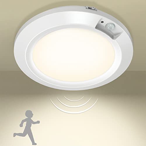 Bemexred LED Batteridriven Taklampa Med Rörelsedetektor Inomhus, 3000K Trådlös Rörelsedetektor Lampor Batteri Nattlampa för Garderob Hall Badrum Källare Skåp Trappa Ø16cm Varm Vit