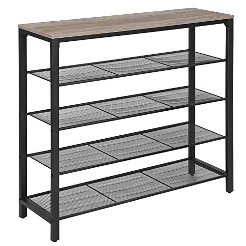 VASAGLE Skorack, skoförvaring med 4 meshhyllor och stor yta för väskor, skoorganisator för hall, garderob, vardagsrum, 100 x 30 x 92,5 cm, industriell, Greige och svart LBS015B02