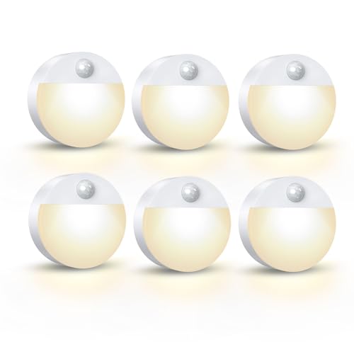 OQIMAX Rörelsesensorljus, Battey drivs under skåp lampor, dubbelsidig klistra in nattlampa, sladdlösa garderobslampor, auto på/av, för garderob, hall, kök, trappor (varmt ljus), 6-pack
