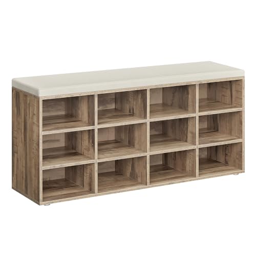VASAGLE Skobänk, skoorganiserare med 12 fack, vadderat säte, för entré, hall, garderob, kamelbrun och beige cappuccino LHS012K02