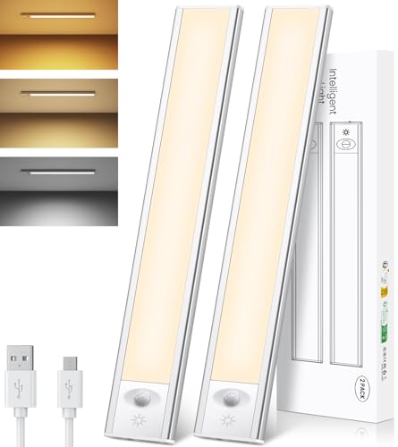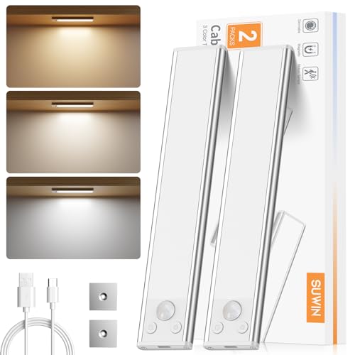 SUWIN LED-kökslampa med rörelsesensor, dimbar LED-kökslist med tre färgtoner, USB-laddningsbar skåplampa för kök, garderob, trappa, hall, garage, 2-pack