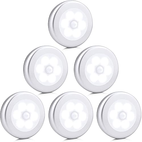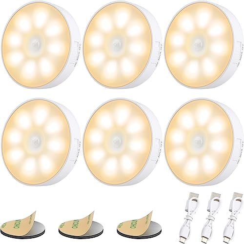 6-pack rörelsesensorlampor, trådlös batteridriven automatisk nattlampa med 3M självhäftande kuddar som fäster var som helst eller använder magnet, skåp garderob garderob hall trappor sovrum