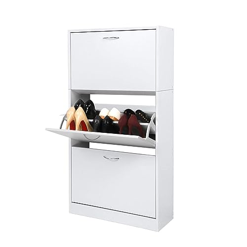 Meerveil Skoställ, skoskåp med 3 lådor, förvaringsorganisatör för vardagsrum, hall, garderob, entré, vit, 63 x 24 x 120 cm