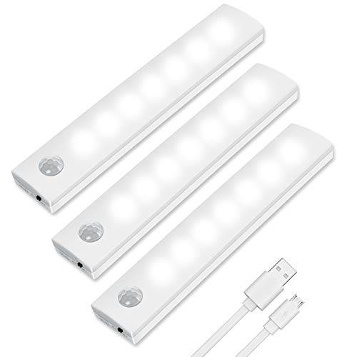 Vicloon LED-sensorljus, 3 st skåpljus med rörelsedetektor och magnetiska remsor, belysning under skåp uppladdningsbar, LED-skåpbelysning för kök, garderob, trappa, låda, hall (vanlig vit)