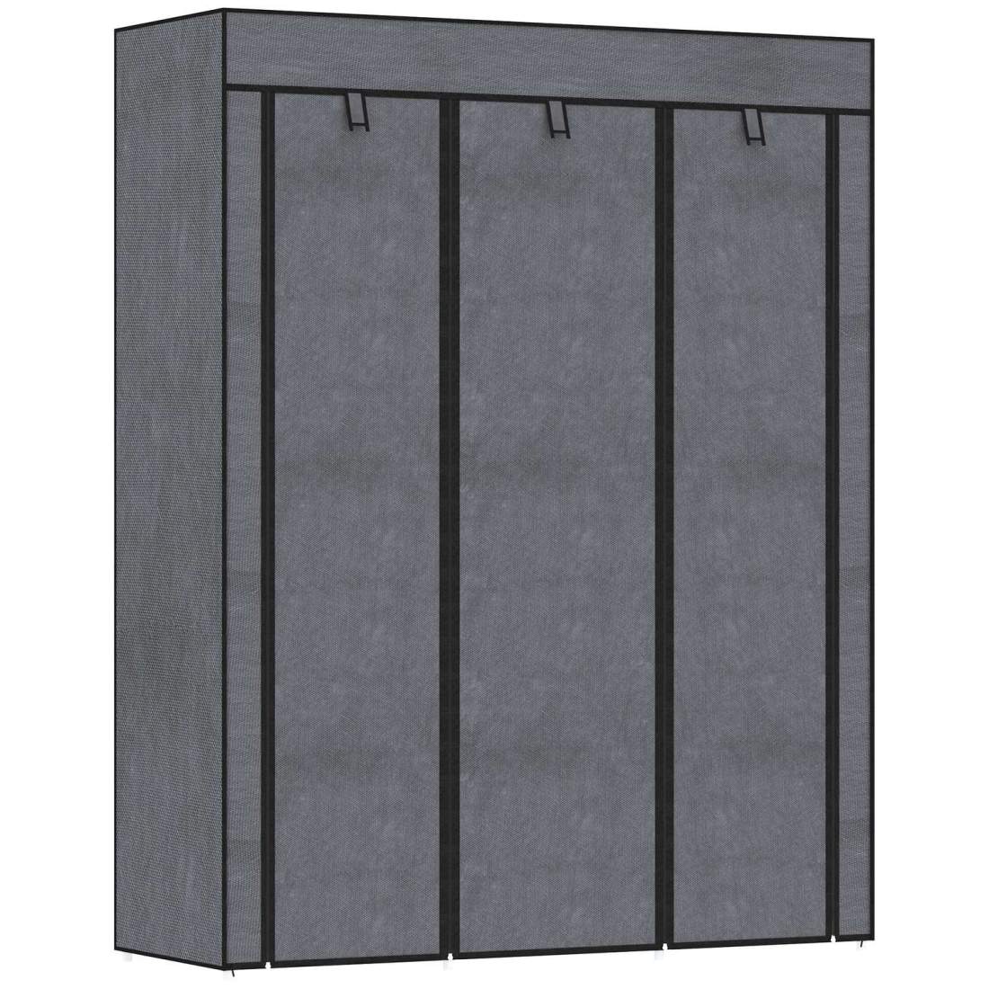 Tyggarderob, garderob med klädstång, 8 plan, hopfällbar garderob, hopfällbar garderob för sovrum, hall, fibertyg, mörkgrå, 125 x